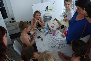 Najpierw tylko uważnie słuchały i dopytywały o rodzaje papieru do kolorowania, różnic między poszczególnymi rodzajami tuszów, technik kolorowania wodnego i Distress Markerami (które sama też miałam okazję wypróbować po raz pierwszy!) - aż wreszcie młodzież przełamała nieśmiałość i osobiście przystąpiła do działania: