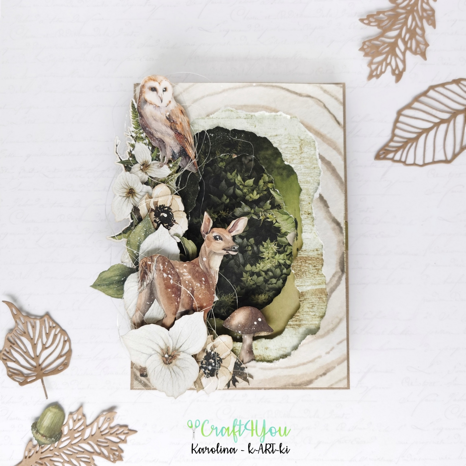 Wszystko to za sprawą kolekcji papierów "Woodland" od Mintay Papers, którą wybrałam do stworzenia dzisiejszej inspiracji. Jest to kartka stworzona na zasadzie shadowboxa - składa się z kilku warstw, które tworzą trójwymiarowy efekt i wrażenie głębi.