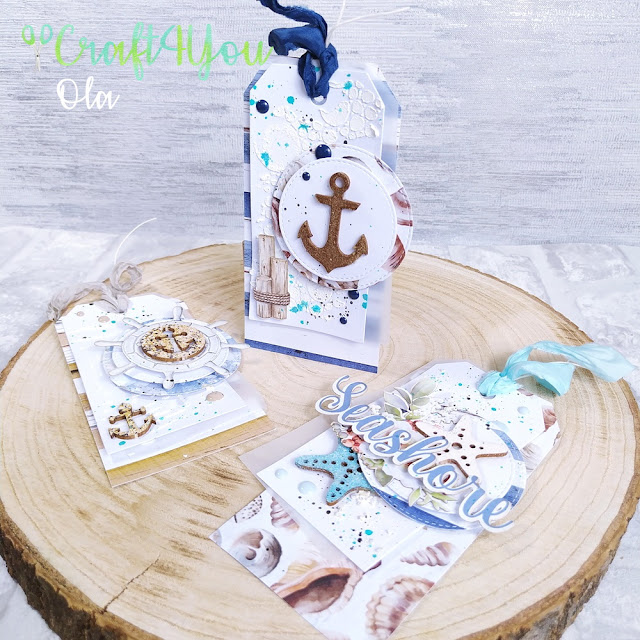 Witajcie, dziś przychodzę do Was z tutorialem na trzy tagi morskie. Wykonałam je z papierów Mintay kolekcja Seaside Escape.